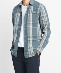 Vince Men’s Micro-waffle Pima Cotton Double-collar Long-sleeve T-shirt | Driver Green & Black