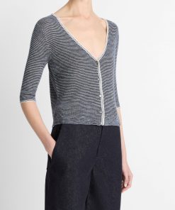 Vince Women’s Hand-cut Argyle Wool-blend Short-sleeve Sweater | Crema & Palazzo & Buttermilk