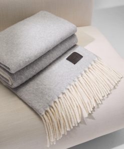 Crafted of a blend featuring alpaca, wool and silk in a brushed finish, this cozy throw adds a quietly luxurious accent in any room.