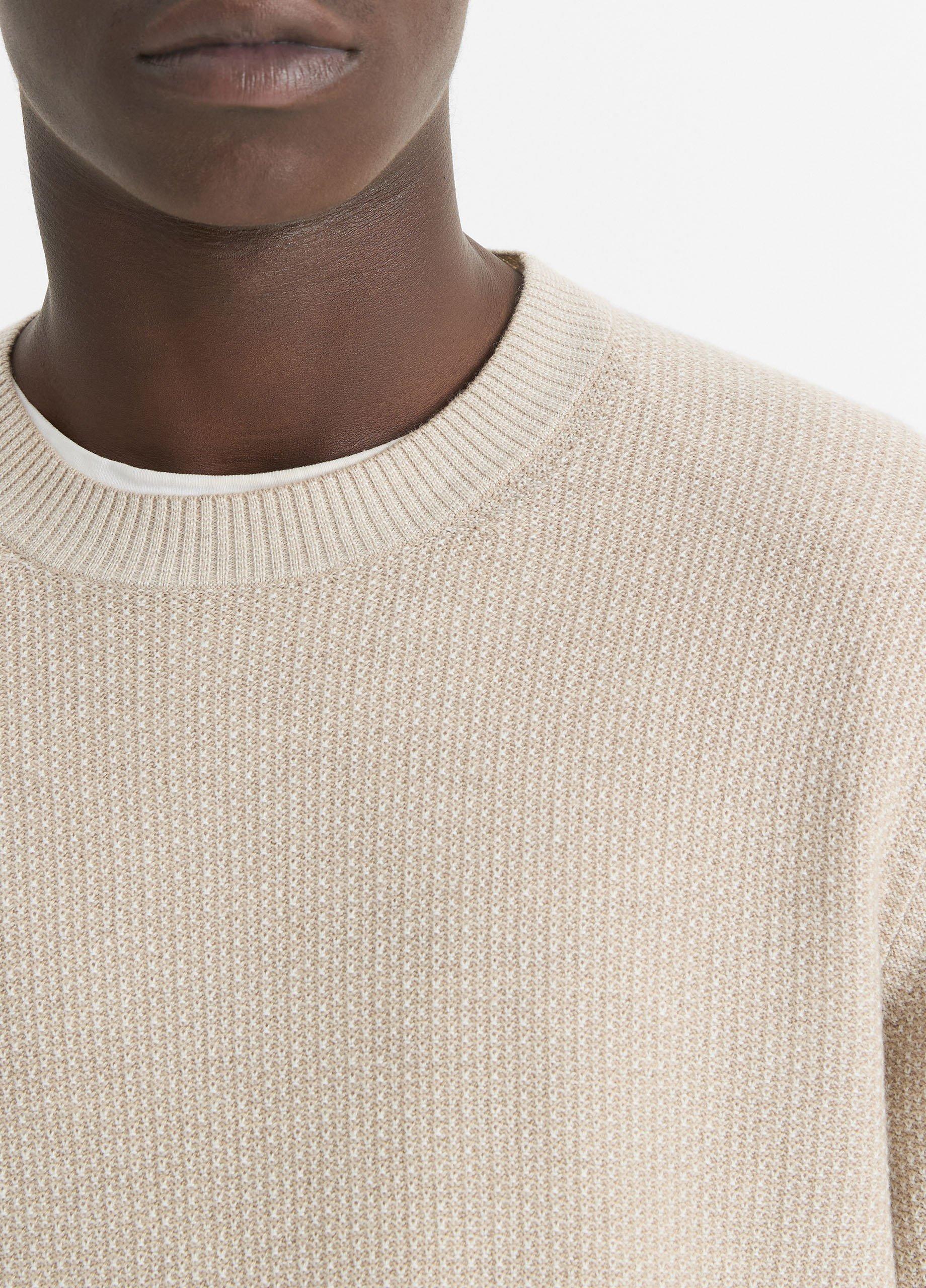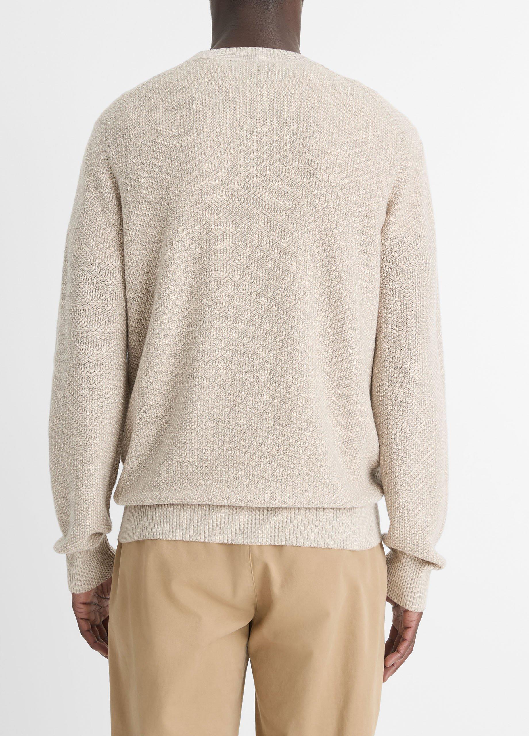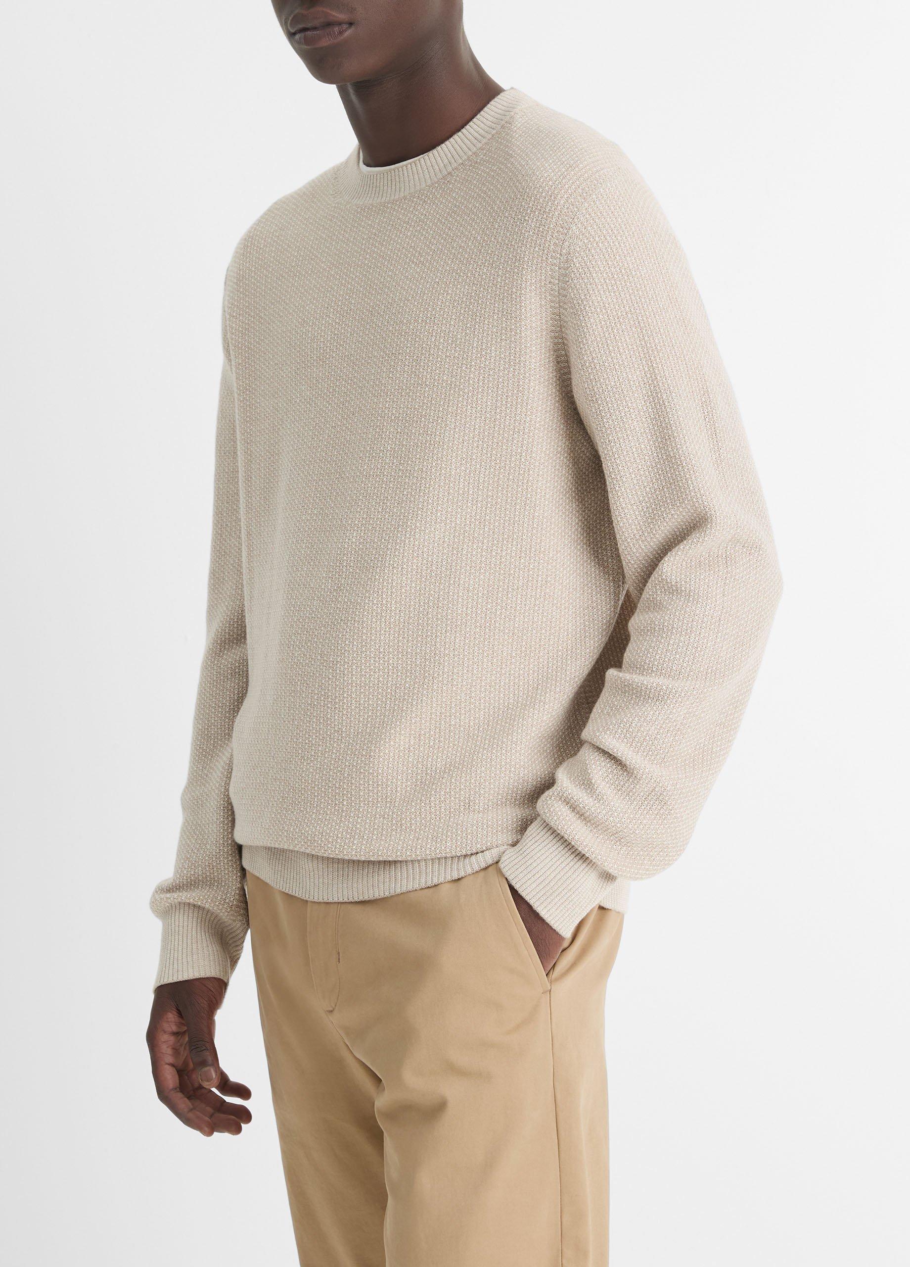 Soft and textural, this classic crew neck sweater is jacquard-knit in a geometric pattern using a luxe blend of wool, cotton and cashmere.