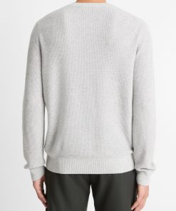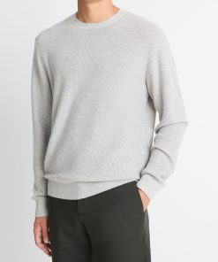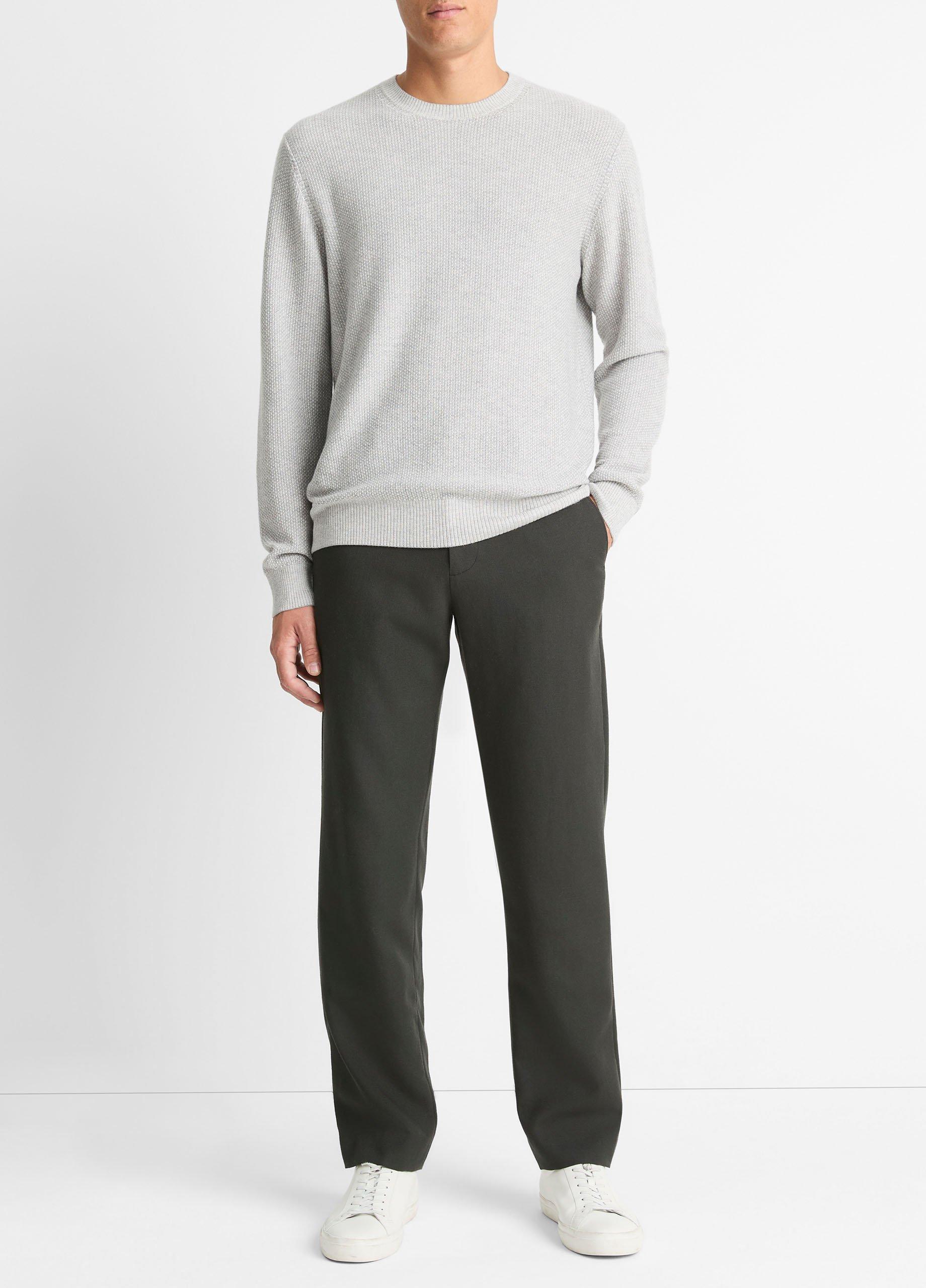Vince Men’s Geo-jacquard Wool-blend Crew Neck Sweater | Heather Grey & Classic Cream