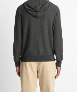Vince Men’s Geo-jacquard Wool-blend Sweater Hoodie | Driver Green & Coastal Blue