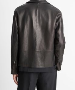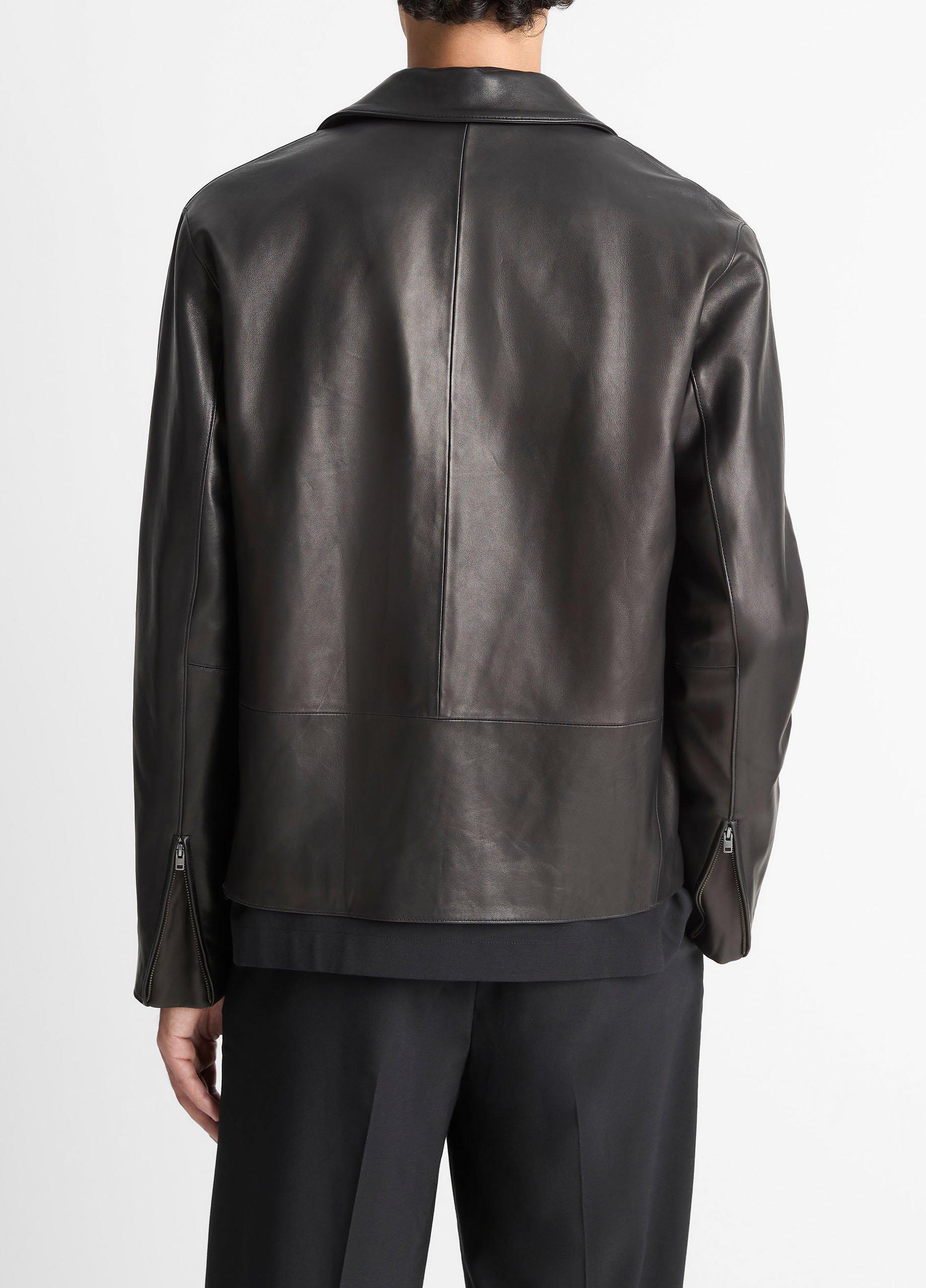 Crafted from buttery soft lambskin leather, our zip-up jacket is constructed with clean lines and minimal finishes for elevated versatility.