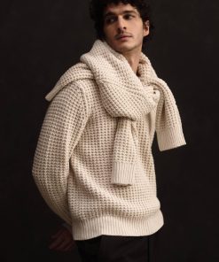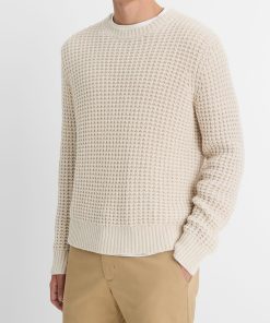 An easy, timeless essential with a twist: our classic, fully fashioned crew neck is elevated with a textural, chunky waffle-stitch finish.
