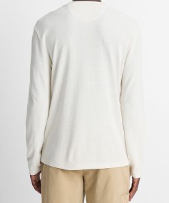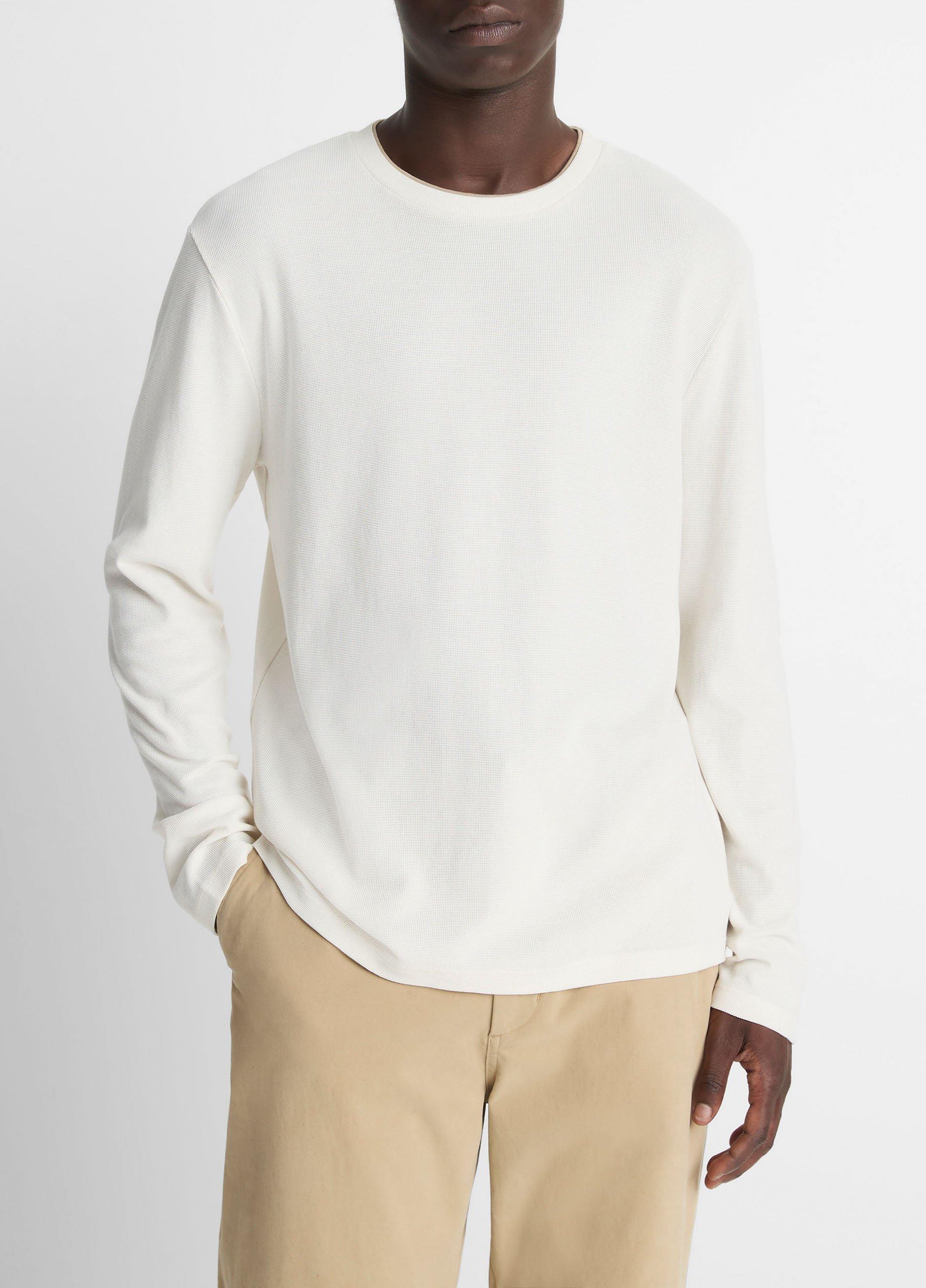 Vince Men’s Micro-waffle Pima Cotton Double-collar Long-sleeve T-shirt | Blanco & Terrapin