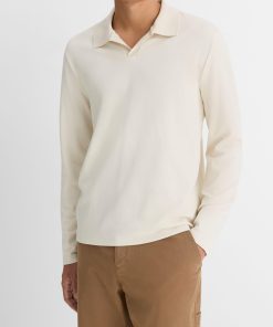 Vince Men’s Milano Pima Cotton-blend Johnny-collar Shirt | Bone