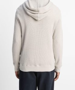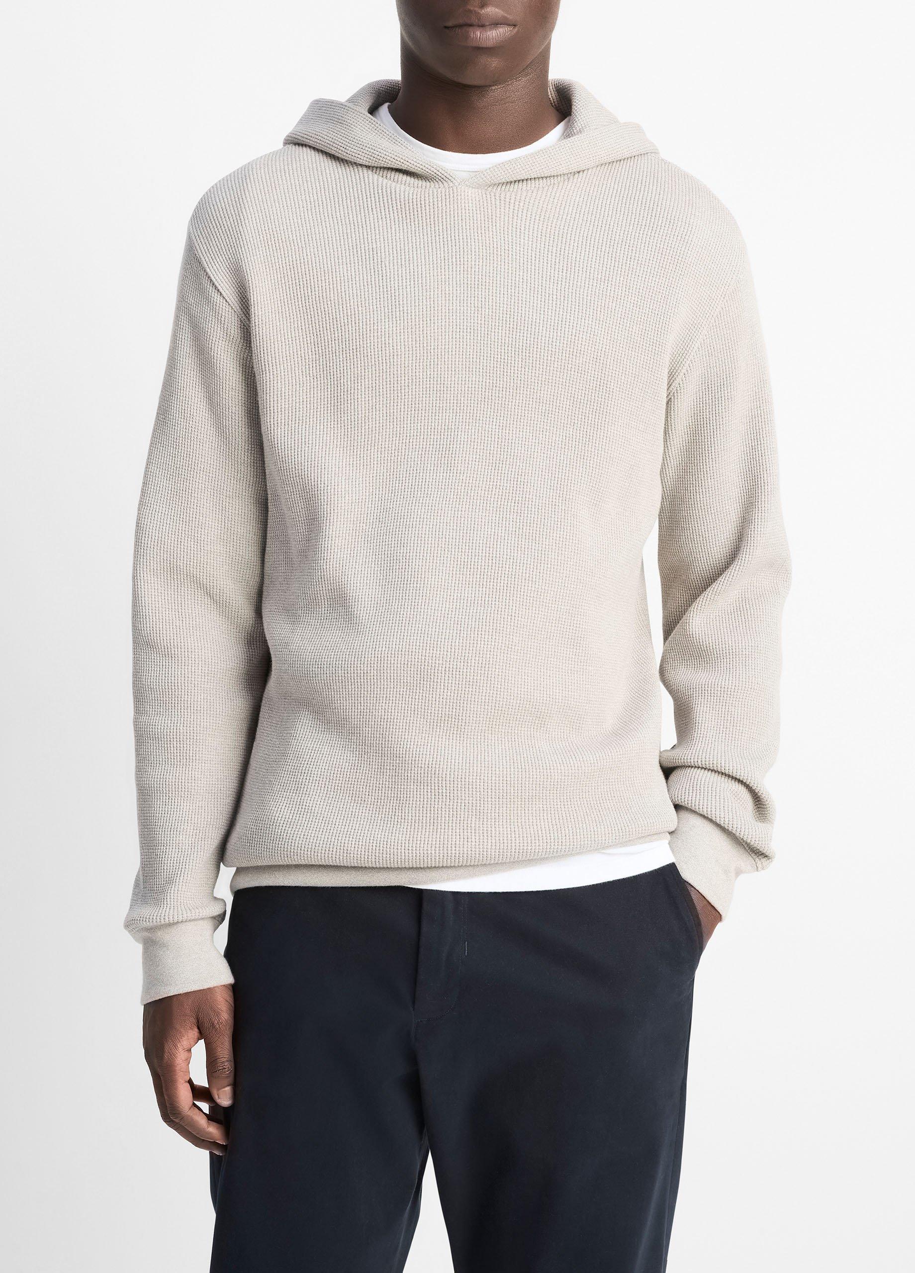 Vince Men’s Mouliné Pima Cotton Thermal Hoodie | Putty & Off White