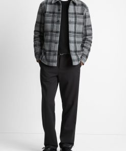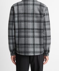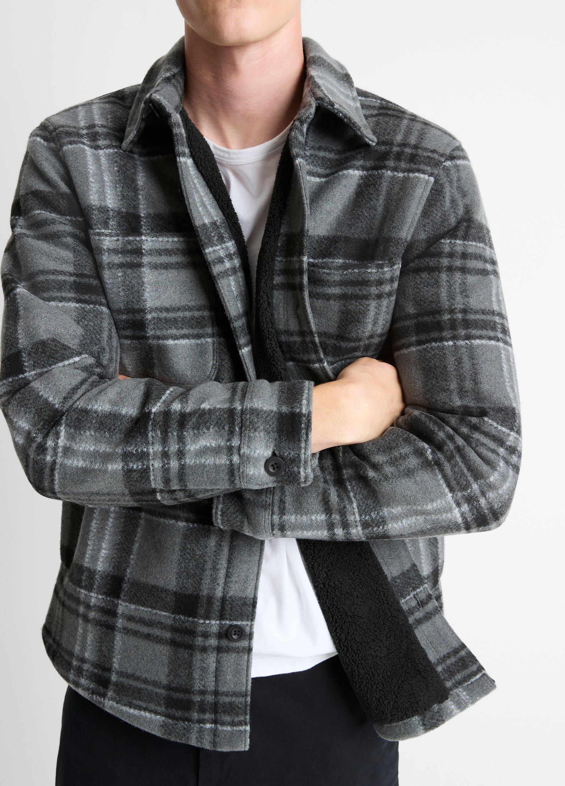 Vince Men’s Sherpa-lined Plaid Shirt Jacket | Medium Heather Grey Combo