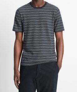 Vince Men’s Striped Loose-knit Cotton T-shirt | Coastal Blue & Off White