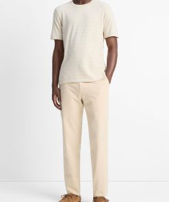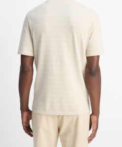 Vince Men’s Striped Loose-knit Cotton T-shirt | Coyote & Off White