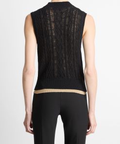 Vince Women’s Cable Cotton-blend Double-layer Shell | Black & Gold Cliff