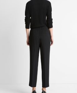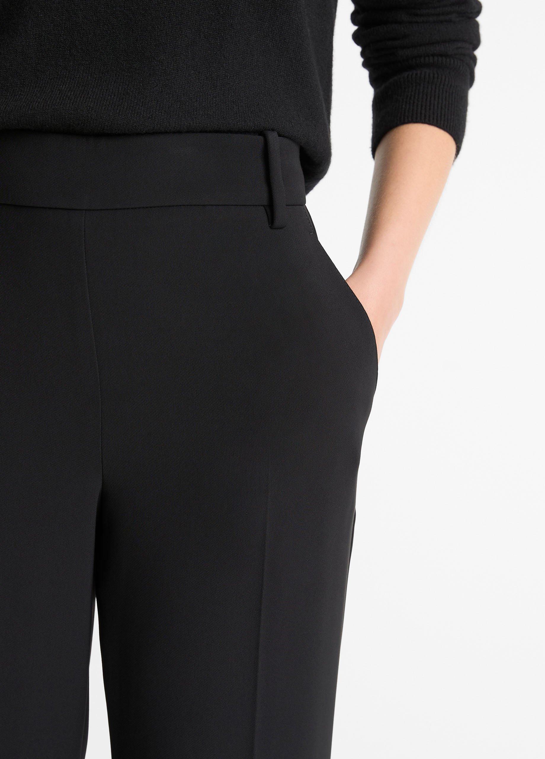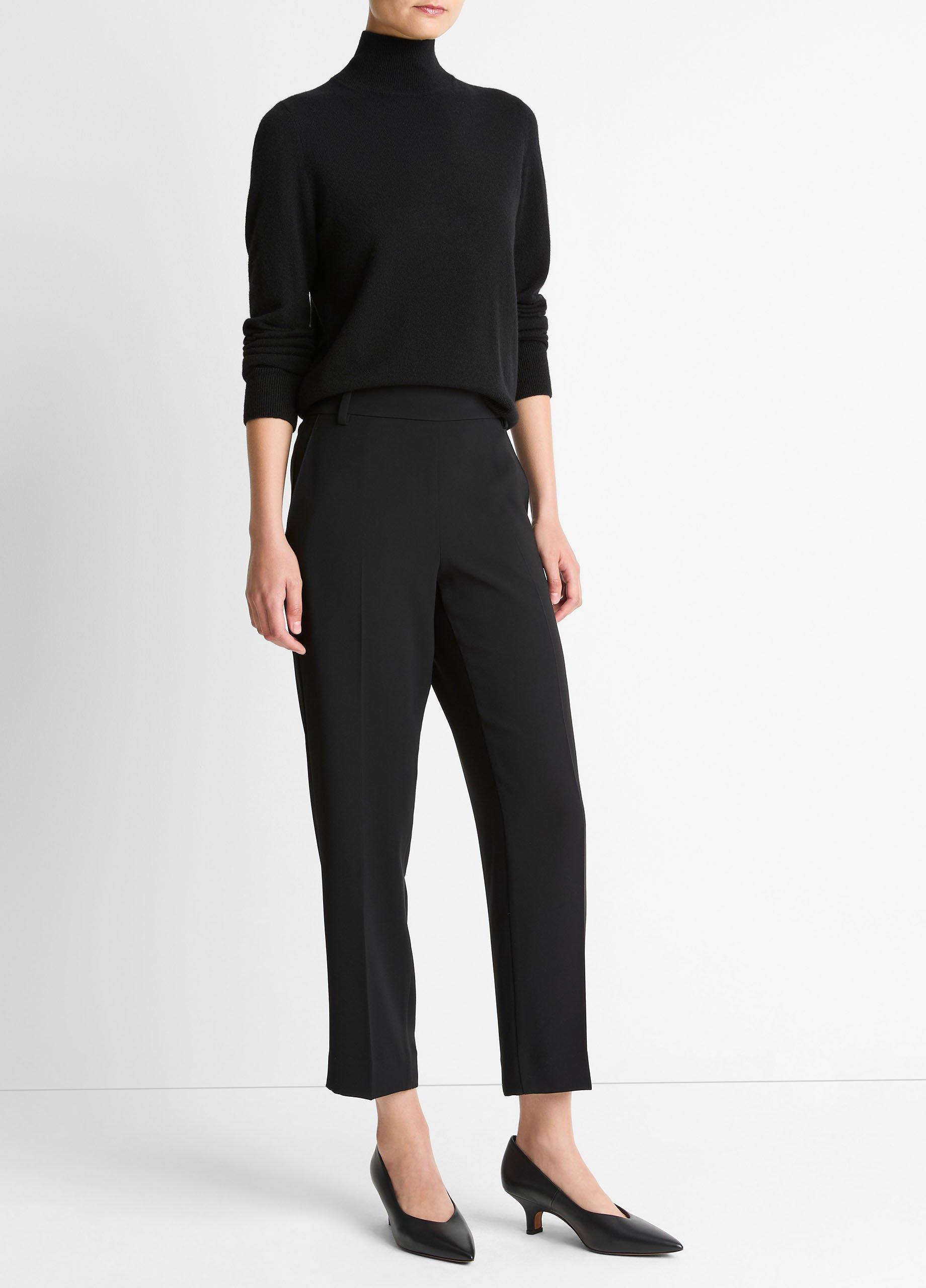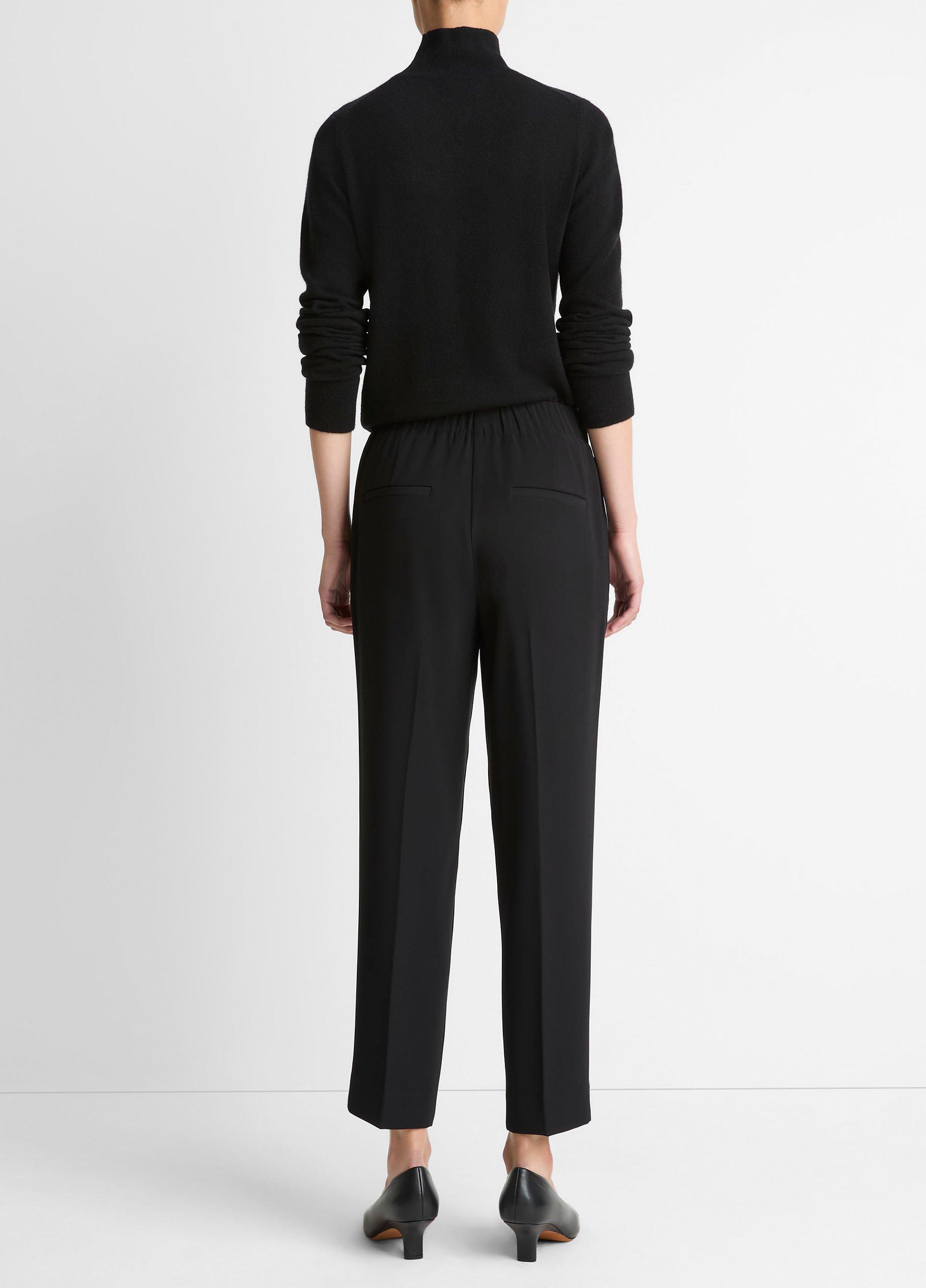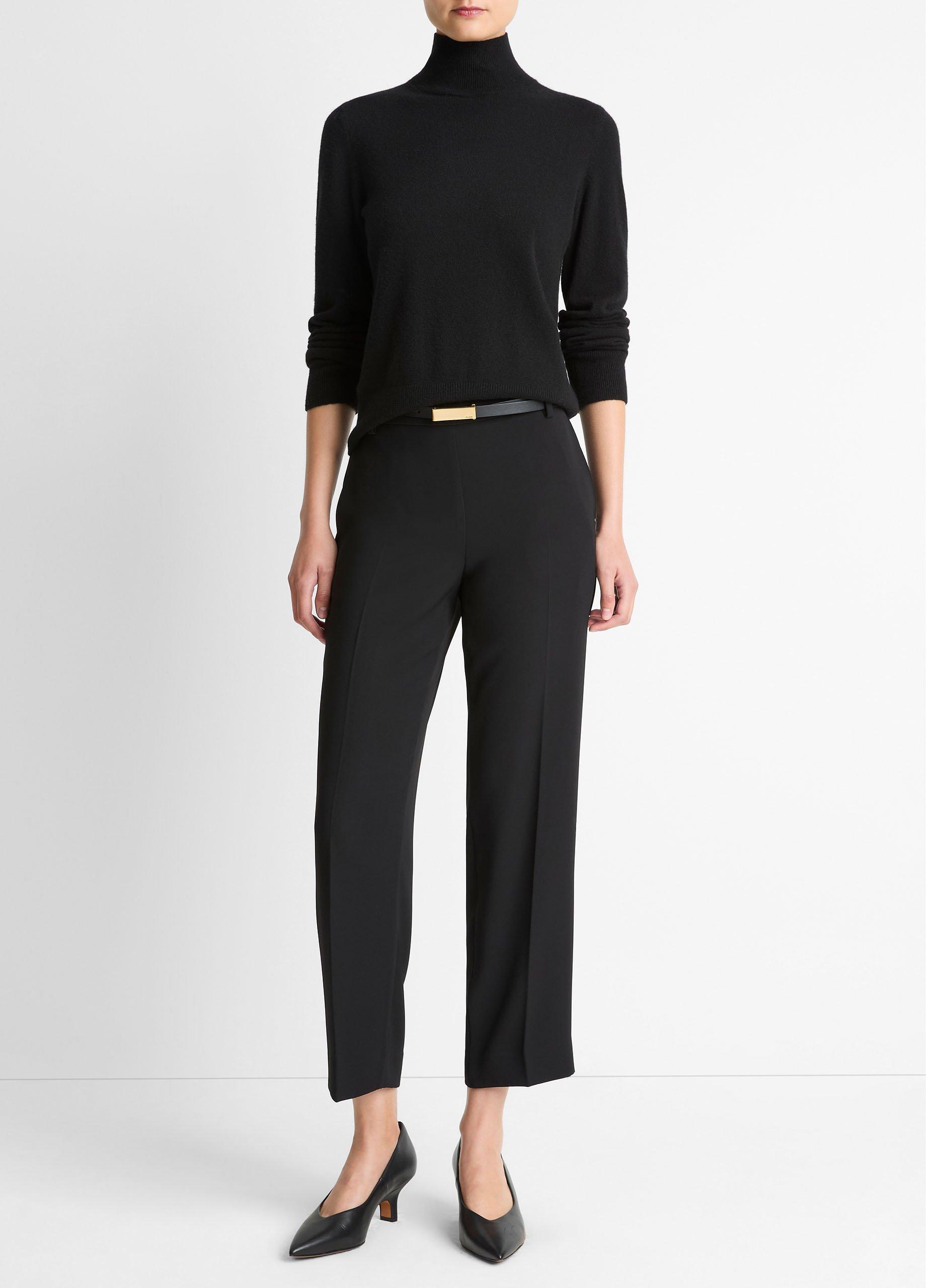 With the appearance of a trouser and discreet comfort from an elasticized back waist, this crepe pull-on pant will readily take on the lion’s share of the work in your wardrobe. It’s tailored with a versatile, straight cropped silhouette that tapers slightly below the knee.