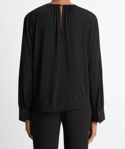 Vince Women’s Matte Jersey Gathered Blouse | Black