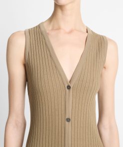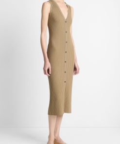 Vince Women’s Ribbed Cotton-blend Button-front Dress | Tapenade