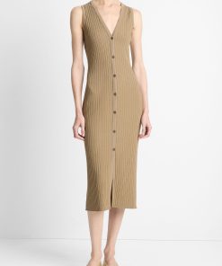 Vince Women’s Ribbed Cotton-blend Button-front Dress | Tapenade