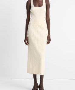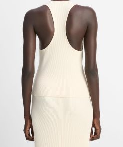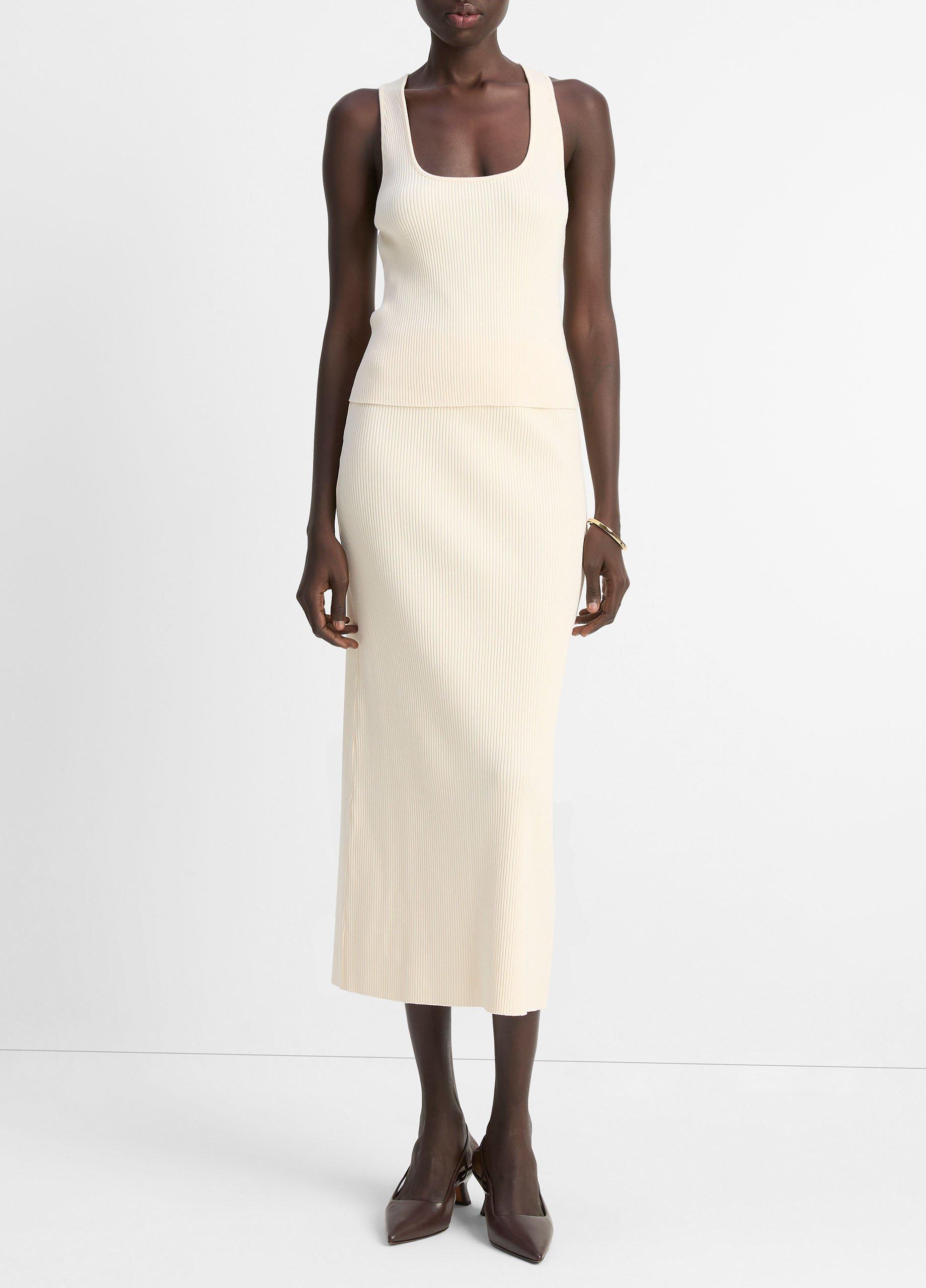 Soft and stretchy, our racerback tank is crafted from a ribbed cotton blend that boasts a sweater-like feel on the skin. Match it back to our midi skirt for an effortlessly pulled-together pairing to have on hand.