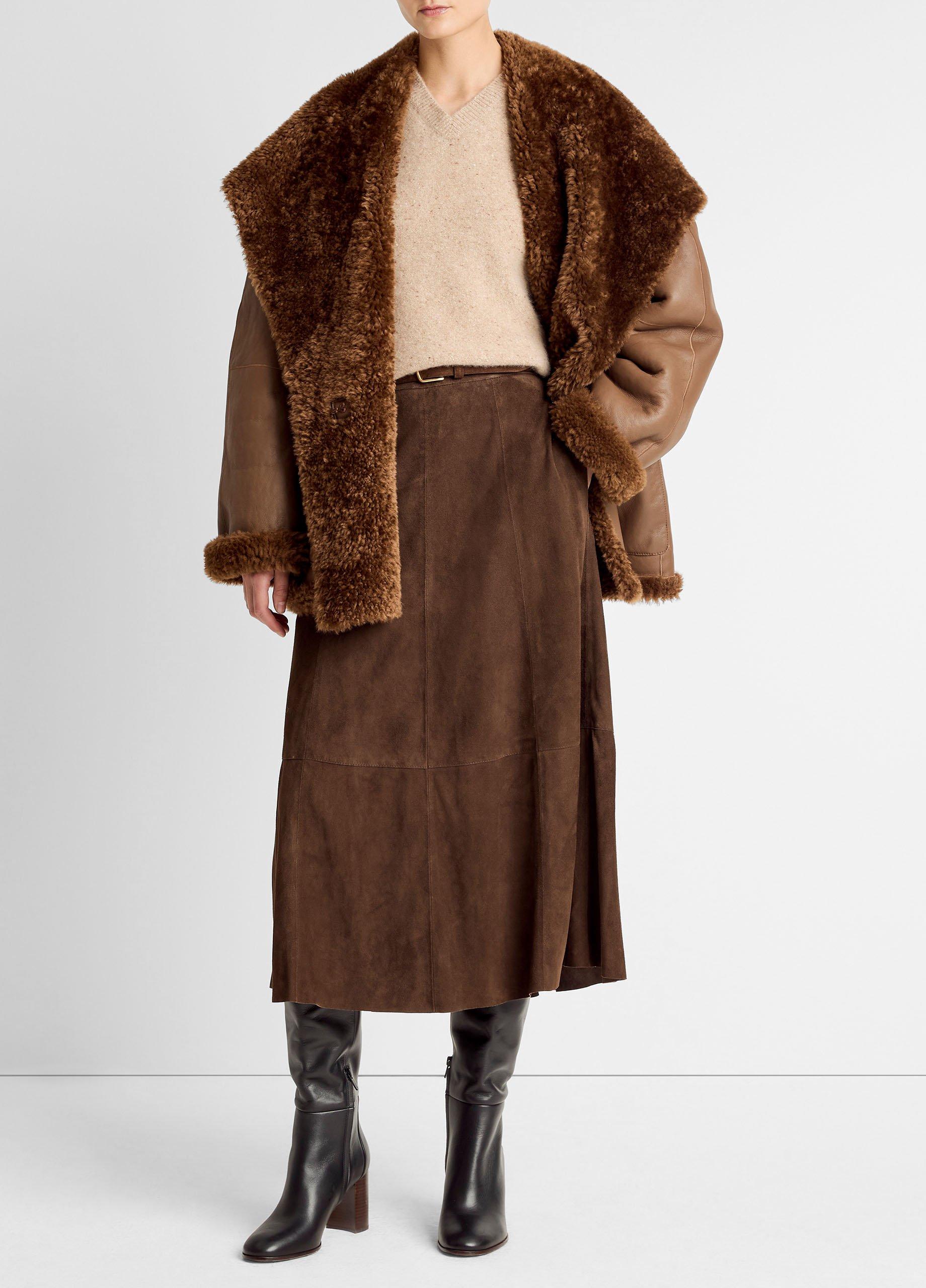 This jacket takes warmth to new heights with its buttery leather face and 100% lamb shearling interior. Our favorite part is that exaggerated hood, which doubles as a shawl collar when it’s not embracing the head.