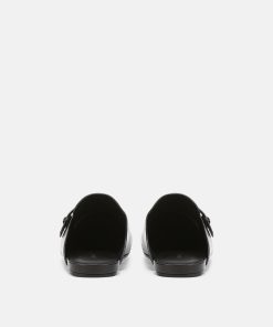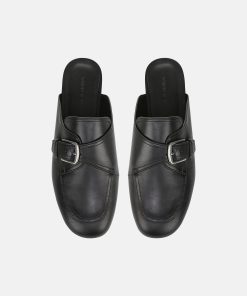 Our Minetta Loafer Mule is composed of soft leather and finished with a self-strap across the vamp that secures with a squared metal buckle.