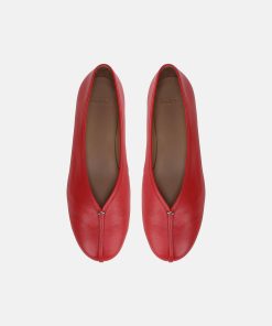 Soft leather panels are held together down the center with a small metal bar accent for a refined, deconstructed spin on the timeless ballet flat. At the bottom, a rubber outsole provides discreet traction.