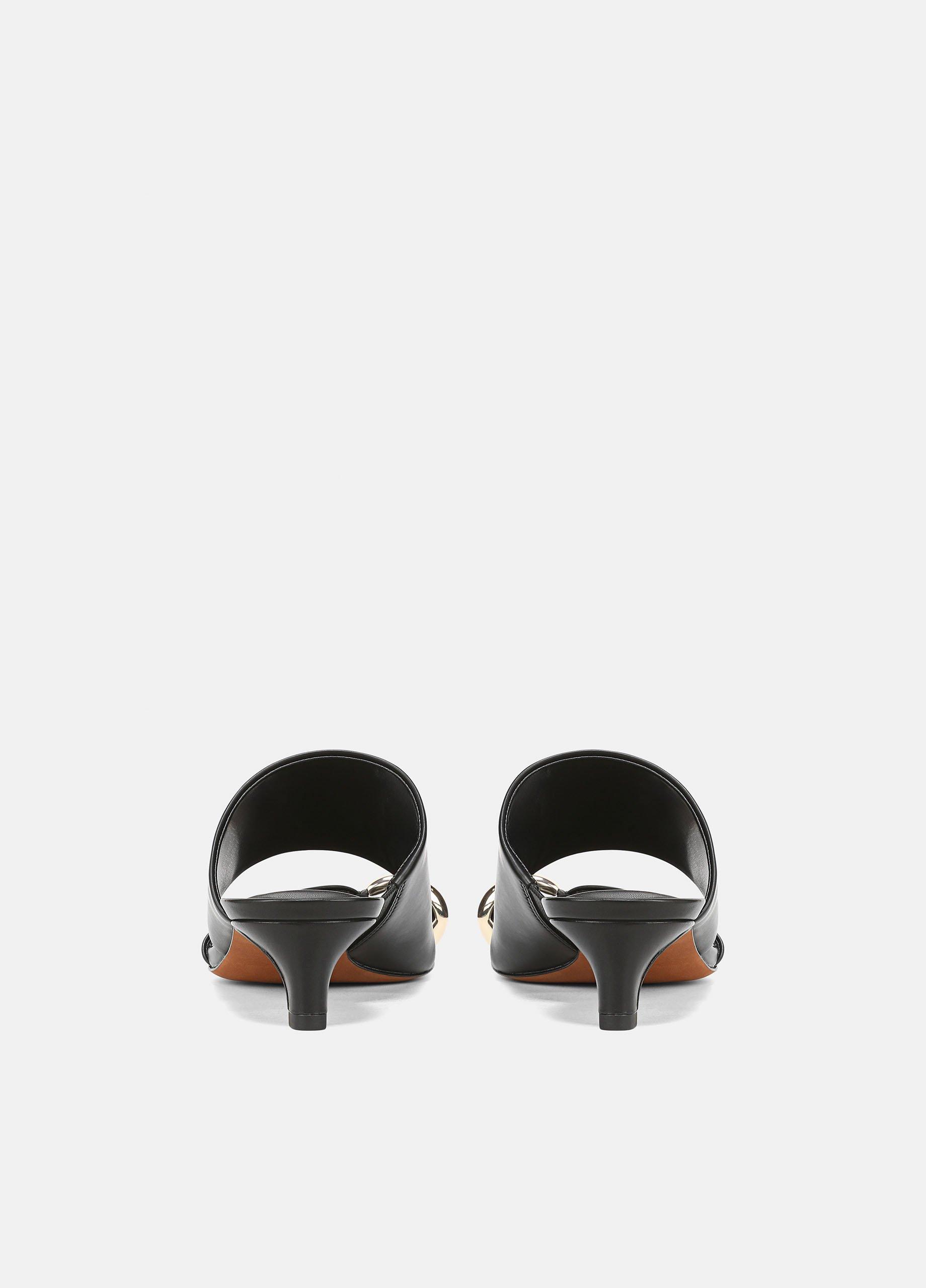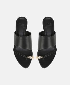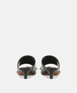 Set on a low, sculptural kitten heel, our supple leather sandal plays with proportion through its juxtaposing wide and slender straps. We’ve finished it with a jewelry-like, gold-tone metal ring at the toe.
