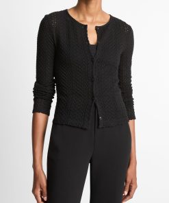 Our easy cardigan is knit from sumptuous Japanese cotton in a crochet-inspired construction — it’s light, airy and boasts the softness of a sweater.