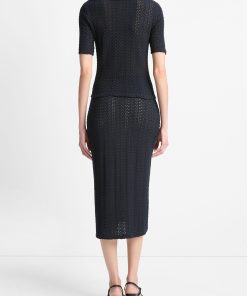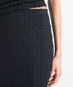 Our easy midi skirt is knit from sumptuous Japanese cotton in a crochet-inspired construction — it’s light, airy and boasts the softness of a sweater. Pair it back to our Textural Cotton Elbow-Sleeeve Polo Top for a matching set.