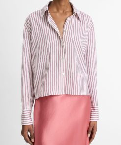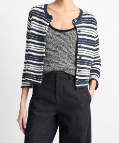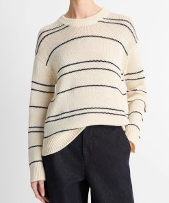 Vince Women’s Ticking Stripe Linen-cotton Low-rise Crop Flare Trouser | Iris Slate & Off White
