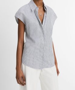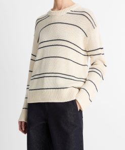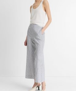 Vince Women’s Ticking Stripe Linen-cotton Low-rise Crop Flare Trouser | Iris Slate & Off White
